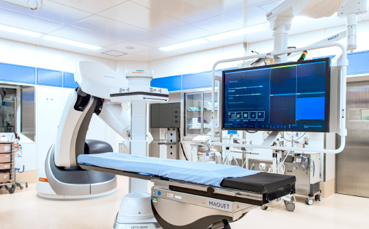 ハイブリッド手術室とは、据置型の血管撮影装置を手術室内に設置することで、外科的な直達手術と血管内治療を複合的に行える手術室です。