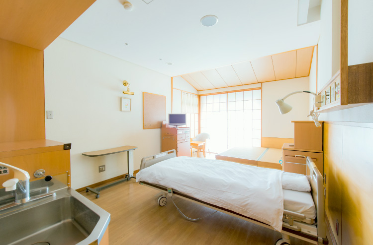 一般病棟と同様の保険診療の対象となります。厚生労働省より「緩和ケア病棟」の許可を受けているため、病状に関わらず負担は定額です。病室はすべて個室ですが個室料はいただいておりません。