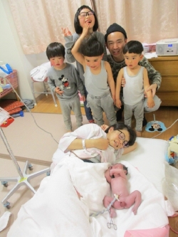 破水をしたらググッとお産が進み、パパ、お兄ちゃん、姪っ子、甥っ子、ばあば、みんなで赤ちゃんを迎えることができました!