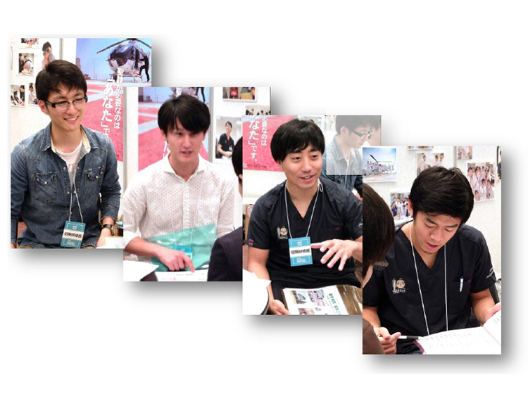 こんにちは。 5月13日(日)は、3回目の参加となる“マイナビ Resident Festival 大阪”に出展して参りました! 1年目A先生&K先生&H先生&M先生の4名が説明会初デビュー☆ お天気は前年と比べて朝から雨・雨・雨。 医学生さんの足が遠のいてしまうのが心配です。 今年は心なしか会場にいる医学生さんの数が少ないように感じましたが、 参加する先生方からは、「勧誘がんばります。任せてください!」との頼もしい言葉が!!☆ 14:30からのカフェミーティングも利用して、ブースに来訪してくれた医学生さんとじっくり話をしてくれました。