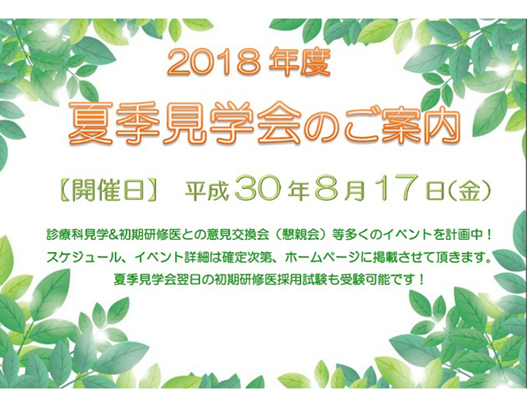 研修医日記2018年度 夏季見学会日程のご案内