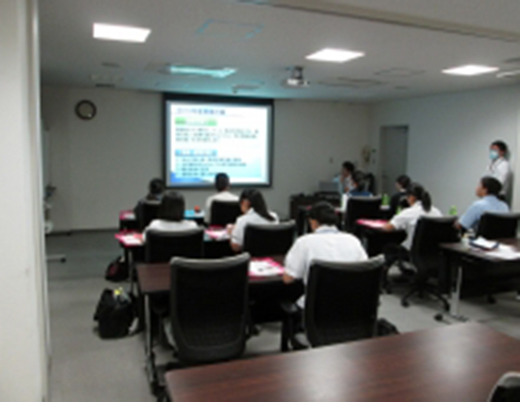 7月30日に当院のおおぞら療育センターにて初めての介護職就職説明会を開催しました。 おおぞら療育センター単独で就職説明会を開催するのははじめてでしたが高校生の就職希望者を中心に9名の方が出席していただきました。重度心身障害児・者の大規模施設は全国でも珍しく県外からもさまざまな施設の方が見学に来られます。 1984年にはノーベル平和賞を受賞したマザー・テレサさんが来訪されたこともあります。 高齢者介護施設とは違う点や特徴について生活支援課のT課長が熱心に説明をしてくれました。ドクヘリやホスピス、おおぞら療育センターの見学を行い、先輩職員から介護職を目指した理由等たくさんの話を聞くことが