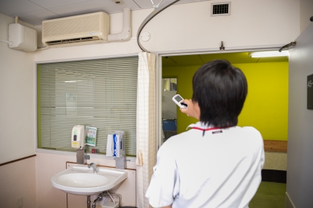 施設課の職員が、「人がいない部屋でエアコンを使っていないか」、「適正な温度設定になっているか」などを見て回りました。