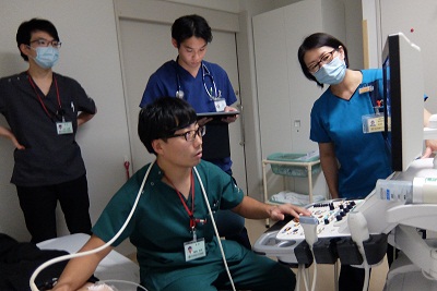 技師さんの指導のもとに研修医達は落ち着いて画像描出していました。