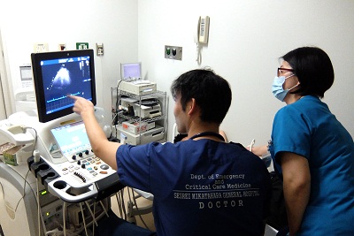 今までの研修医達があてるプローブの感覚を思い出しつつ