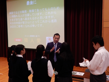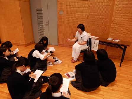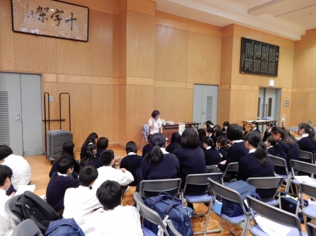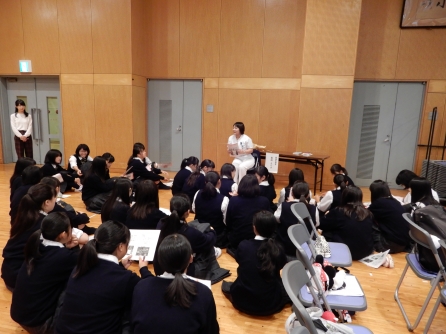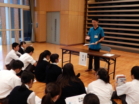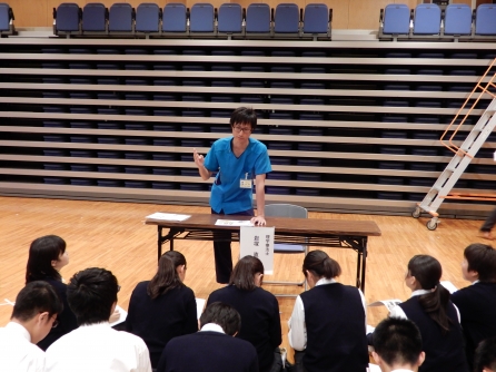 将来医療職を考えている生徒さんを対象とし、看護師、理学療法士、作業療法士、放射線技師、臨床検査技師の5職種で病院のことや各職種の仕事内容などを話にいきました。将来の夢、職業選択のために少しでもお役に立てれば・・・いやいや看護の道を選んでくれればと~っても嬉しいです。