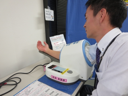 血圧を測っています。