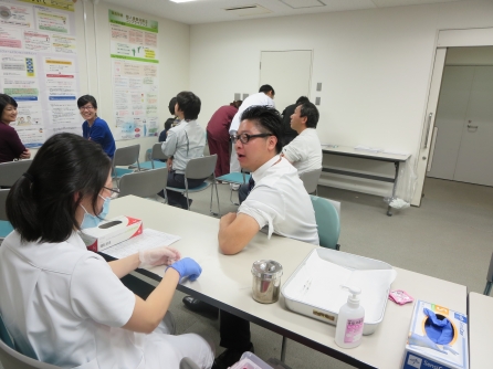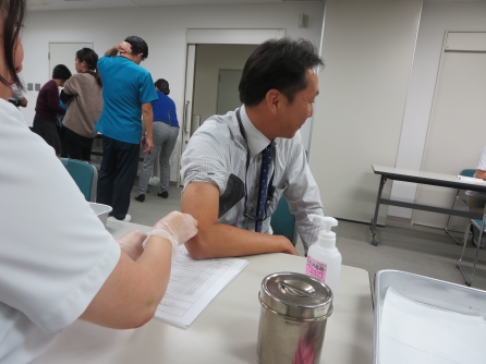 冬のインフルエンザの流行の前に、病院職員も予防接種を受けました。