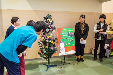 このツリーは12月25日までF号館1階、ステンドグラス下に設置しております。
