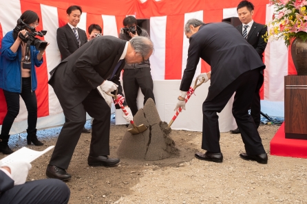 起工式では一般的には神式で行われる場合が多いですが、聖隷では当院のチャプレン(病院牧師)がキリスト教式で起工式を行いました。