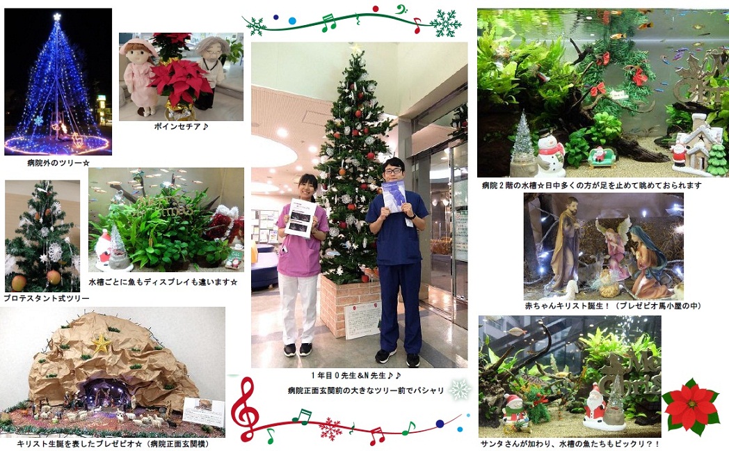 病院内各所にはChristmas Treeや「イエス・キリストの降誕」の情景を再現したプレゼピオ、クリスマス・バージョンの水槽などが数日前よりお目見え♪♪