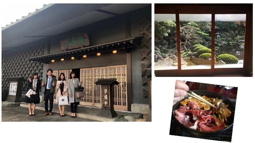 美しい日本庭園を眺めながらの松阪牛のすき焼きが