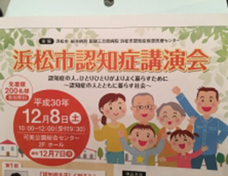 12月8日に浜松市・総合病院聖隷三方原病院浜松市認知症疾患医療センター主催の講演会がありました。場所は可美公園総合センターで、約150名の聴講があり大盛況だったようです。 第1部は、当院の精神科部長、浜松市認知症疾患医療センター長である磯貝先生による「認知症を正しく知ろう」と、当院老人看護専門看護師の佐藤さんが「認知症の人の思いを支える」の講演がありました。佐藤さんが地域の人的資源として活用されること、本当に嬉しく思います。 第2分は、「認知症になっても安心して暮らす」のテーマで、市民の方が認知症の早期発見や進行予防の経験談、これからの生活についてお話されたようです。 看護部