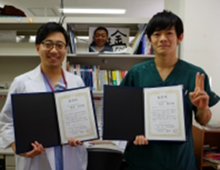 2月17日(日)に三重県医師会館で行われた「第237回日本内科学会東海地方会」に1年目研修医の 1年目K先生&M先生の二人が学会発表に行ってきました♪♪ すると・・・・・ それぞれ発表した循環器科の症例で二人とも優秀演題賞を受賞!!1年目K先生は 「診断に難渋した非集積地での高齢発症遺伝性トランスサイレチン(ATTR)アミロイドーシスの1例」 1年目M先生は 「4D flow MRIがシャント血流の同定に有用であった心室中隔穿孔の1例 」を発表しました。後日、表彰状が届き、二人揃って記念撮影!!! このダブル受賞は快挙ですねっ♪♪