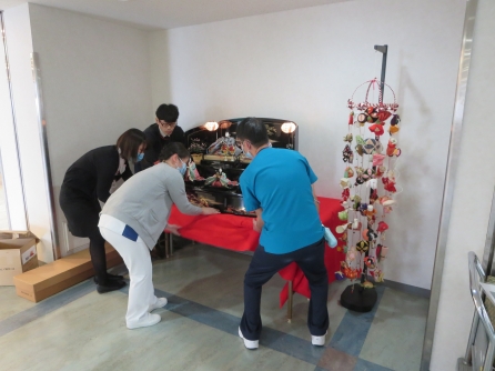 2月の立春を迎えた4日に、当院1階正面玄関ホールに雛人形を飾りました。