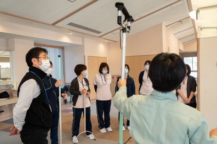 今年は特別に業者の方をお呼びし、医療介護総合EXPO展で紹介された防犯器具“キャッチマスターProケルベロス”をはじめ各種刺股の紹介していただきました。