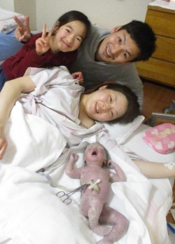 8歳年の離れたお姉ちゃんとママの事を一生懸命励まずパパ・・・とっても良い雰囲気の中で元気な赤ちゃんを迎えることが出来ました。家族が一人増えて大変な事もあるけれど、それ以上に楽しい事も増えますね!!
