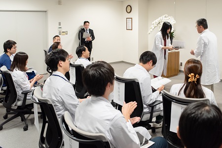 研修医一人一人のスピーチに耳を傾けておられる役職者の方々☆