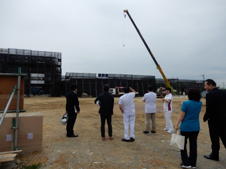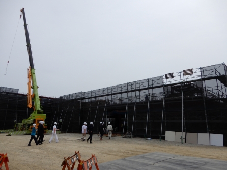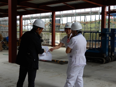 リハビリテーションセンターが、だいぶ形が出来てきました。今日は進捗を見にきながら、壁の色をどうするか?決める日でした。とても広い!というのが正直なところです。利用者さんも働く職員もリハビリが励みになってくれればと思います。アリーナの活用も色々考えが広がります。