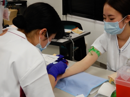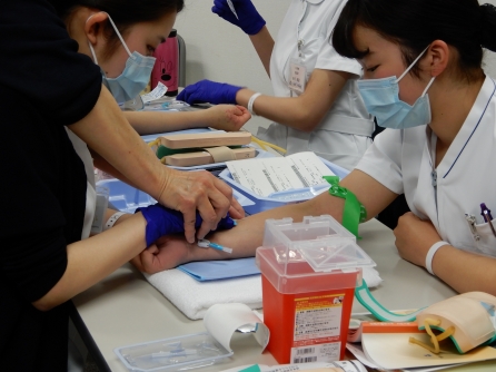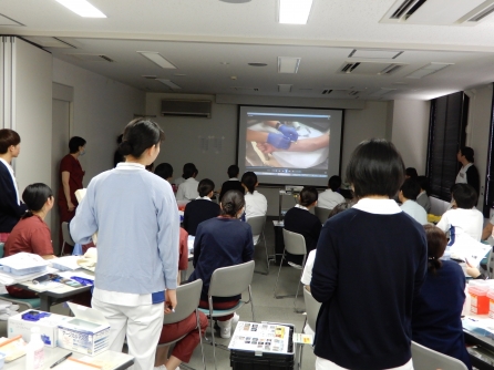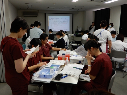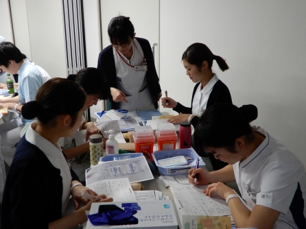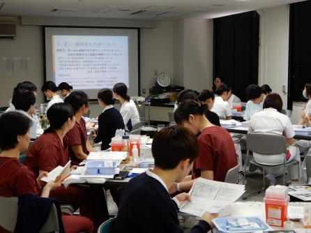 研修は2班に分かれ注射業務もあります