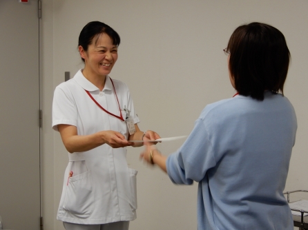 17日の看護課長会でクリニカルラダー認定証の授与が行われました。代表して看護課長でレベルⅤの認定を受けた2名に証書を授与しました。今後のモデルとなる看護実践を期待しています。