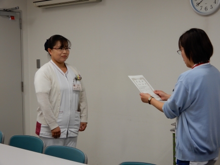 4月17日クリニカルラダー認定証授与 看護課長から2名のレベルⅤ!