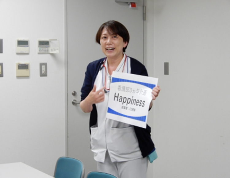 最近Blogの更新頻度が少なくすみません。特定行為研修の指定機関の申請の〆切が5月末で、5月はずっとその作業に追われていました。本日、一旦提出することが出来ましたのでホッとしているところです。 さて、今日の看護課長会では、2019~2021年の看護部職場質改善計画の愛称を募集し、C2病棟から提案された「Happiness」が選ばれました。発表時のC2病棟鈴木課長の歓喜のショットを山田さんがばっちり捉えていました。職場づくりもこのネーミング共々よろしくお願いします。