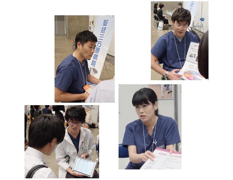 こんにちは! 今年はレジナビ東京の開催のシーズンが7月から6月になり、会場も東京ビッグサイトから幕張メッセになりました! 静岡県病院群で出展するレジナビ東京で、 初期研修医1年生のうち3名が病院説明会初デビューでしたが、後輩の医学生さん達も大勢ブースにお立ち寄りくださり、緊張する暇もなく病院説明へ!! 5月の名古屋の説明会で説明のコツを掴んだ1年目研修医N先生は、医学生さんの心を上手に掴みながら説明してくれました☆ 4名が病院説明&8月の夏季見学会の話をしてくれたお陰で、医学生さんからその場で夏季見学会のお申込を頂けたり、病院見学のお話を頂けたりと本当に忙しい1日となりま