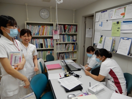 こちらはF4病棟 係長さんが今年度看護研究に取り組んでいるスタッフの計画書をみてあげていました。この後は課長係長会だそうです。