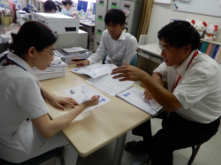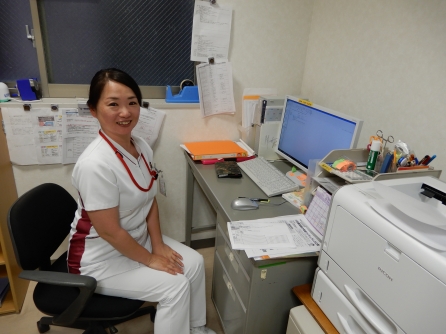 外来のカンファレンスルームの電気がついていたのでノック!外来課長がデスクワークしていました。