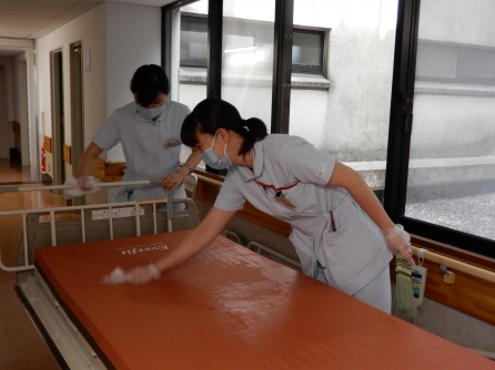 B2病棟 看護助手さんがベット掃除をしていました。お疲れ様です。