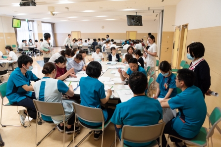 訓練に参加した新入職員は、「今まで学校などで行っていた訓練は、どのように災害から身を守るかを学んでいたが、病院での訓練は患者さんへの対応や医療を継続させるための対応など、今までに経験したことのない訓練で驚きました。そして、この訓練を通して医療人としての自覚を持つことができました。」と語ってくれました。