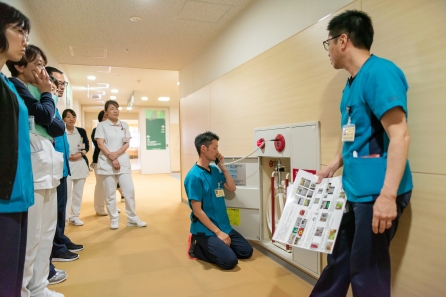 先月、当院大ホールにて職場防災係訓練を行いました。