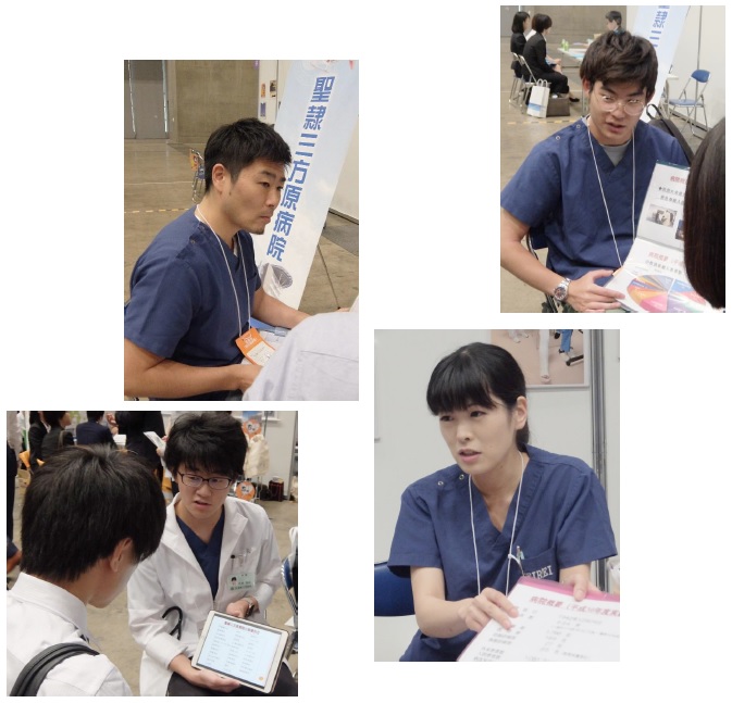 4名が病院説明&8月の夏季見学会の話をしてくれたお陰で、医学生さんからその場で夏季見学会のお申込を頂けたり、病院見学のお話を頂けたりと本当に忙しい1日となりました。