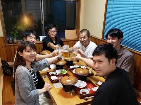 7月から沖永良部で研修スタートする2年目K先生(左から3番目)&研修を終了する2年目A先生(右から2番目)
