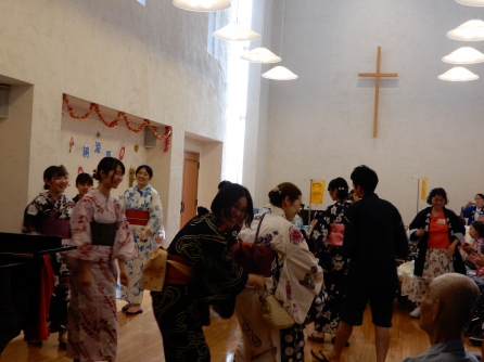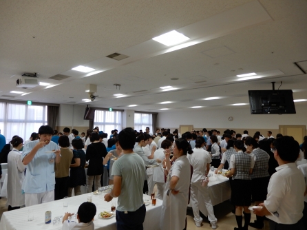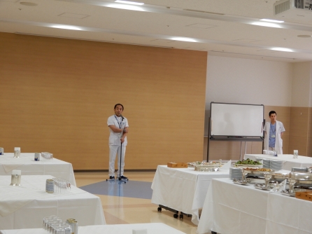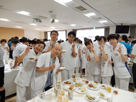 8月の第1週に院内でホスピスと医局主催2つの納涼会がありました。ホスピスは、所長はじめスタッフでのフラダンス(笑)、浴衣を着て盆踊り、温かく和やかな雰囲気が写真からも伺えます。患者さんとご家族、そしてスタッフも一緒に楽しめました。医局主催の納涼会、今年は時間を30分早めて17:30~でした。時間が良かったのでしょうね。仕事終わりの職員が続々と、大ホールがいっぱいになり、見ているだけで何だか嬉しくなりました(笑)。