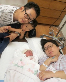 入院時からパパとお兄ちゃんが付き添ってくれて、お産の間の応援もとても心強かったですね!ママもとても落ち着いて過ごされており、とても上手なお産でした!
