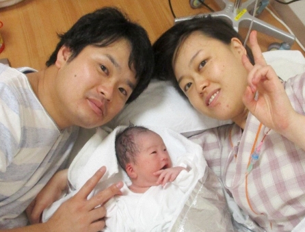 パパもずっと側で励ましてくれて心強かったです!!外は台風で雨風強かったですが、とっても元気な女の子が生まれてきてくれて、たんぽぽには光がさしましたよ♪