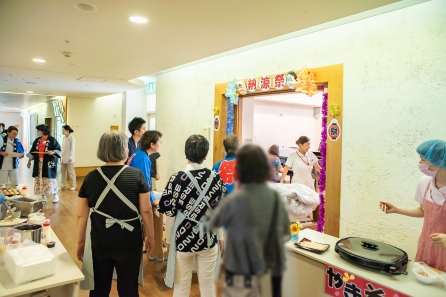 ホスピス病棟の納涼祭では医師、看護師、クラーク、そして栄養課の職員やボランティアさん、近隣の大学生も参加して盛大に行われました。
