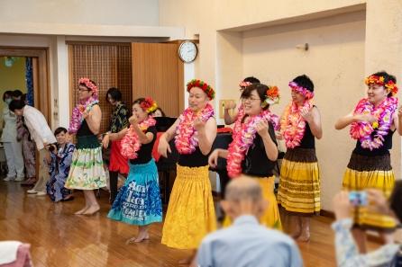 納涼祭のトリはなんと言ってもホスピス科の先生たちをはじめとする職員によるフラダンスです。