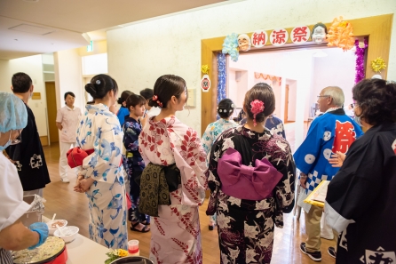 連日の暑さを吹き飛ばすため、ホスピス病棟では納涼祭を毎年行っています。