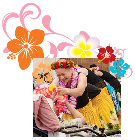 さぁ、ホスピスの先生&看護師さん達のフラダンスの始まりです!!