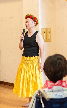 一方、礼拝堂内ではフラダンスショーが終わり、ホスピス科のI所長からご挨拶☆