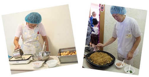 栄養科の方々がたこ焼きや焼きそばを調理してくださったお陰で