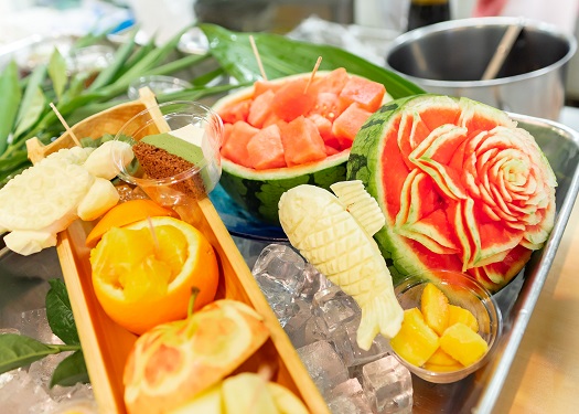 りんごやマンゴー、すいかも美味しそうに並べられています。