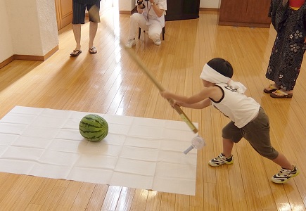 早く割って、美味しいスイカを食べましょう!頑張れ~!!