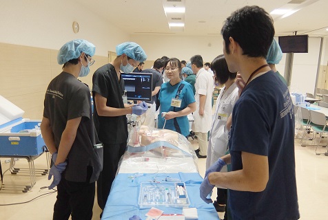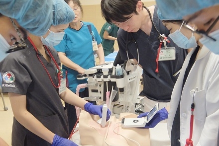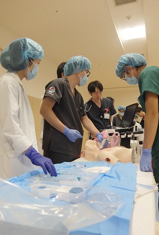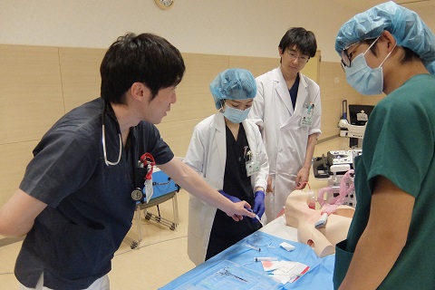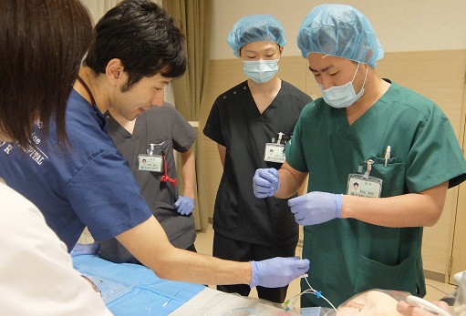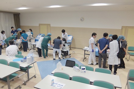 研修医たちは3グループに分かれて、順番に各シミュレーターを使いながら、真剣かつ和やか~に取り組んでいました。