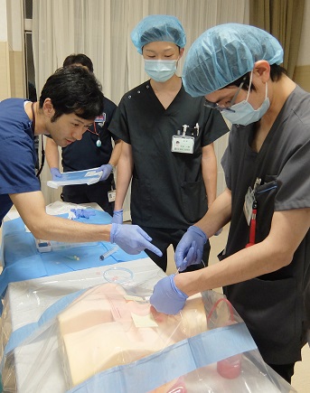 講義0.5時間、実技1.5時間の約2時間の講習会ですが、いざ実技に入ると研修医達は時間を忘れて没頭☆