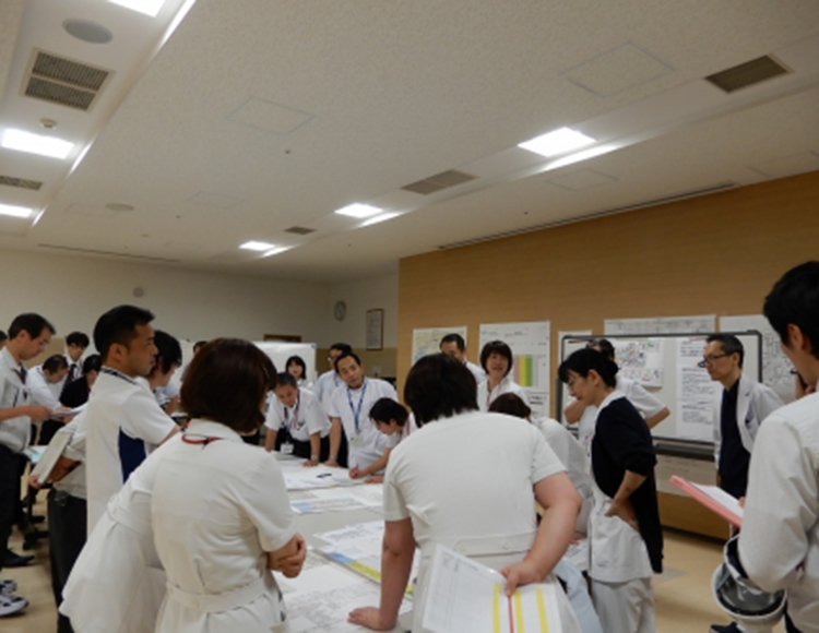 9月20日(金)に地震総合訓練を実施しました。 今年の訓練は「平日の12:00に地震発生。地震発生から21時間経過した時間軸」を想定し、救護所、病棟、対策本部の3つの機能の役割を再確認すること目的としました。 今回の地震訓練は各職場でのBCPに基づいた訓練を行いました。 ※Business continuity planning(事業継続計画)の略で、大規模災害などのリスクが発生した時に医業を中断させないようにすること。また万一医業活動が中断した場合でも、出来る限り早期に機能を再開させるために、平時から戦略的に準備しておく計画の事。 災害拠点病院として準備と訓練を繰り返し実施し、防