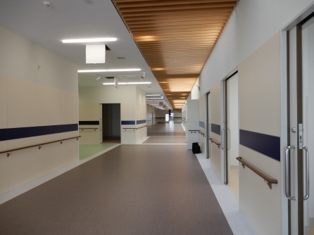診察室前、訓練室前を通ってアリーナまで向かう廊下が長い~